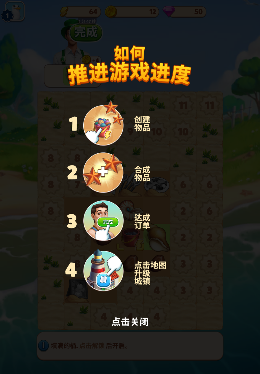 游戏进度推动完全依赖订单的完成,在扎堆的活动推送下,玩家完成一笔订单可以拿取多个任务奖励,当玩家合成一个6级物品时,他可能同时在推进主线剧情(换取金币)、限时竞赛、通行证进度、特殊收集品(卡牌)……