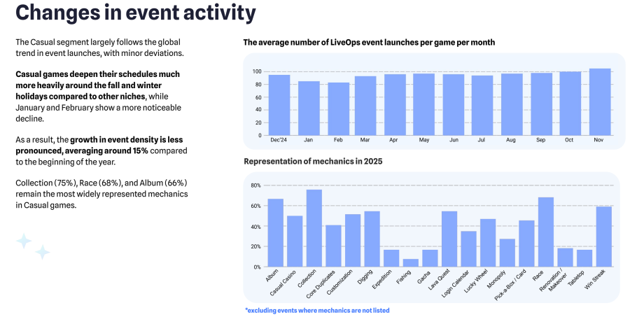 与此对比,2025年头部休闲游戏的月平均活动数量在80~100之间。
